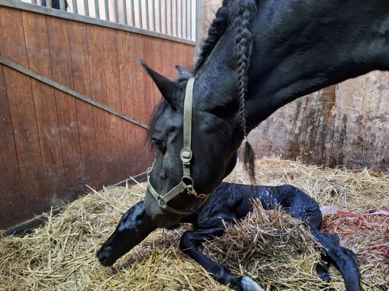 Op donderdag 12 februari werd de voorlopig kroon merrie Neeltje (v. Jehannes 484) van Henk en Jannie Meerding bij ons in de kraamstal gebracht. Neetlje is in 2024 ook bij ons in de kraamstal geweest en beviel toen maar liefst 23 dagen voor de uitgerekende datum van een prachtig hengsteveulen; Binne (v. Herre 524).