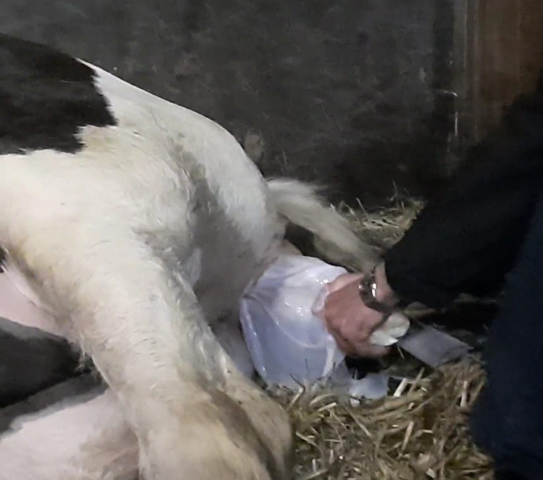 Vrijdagavond 9 februari is het eerste veulentje van kraamseizoen 2024 geboren bij Friese Kraamstal fan de Fiifhoeke! De elite/sportmerrie Geke van de Voorsprong van eigenaresse Melanie Wemmenhove bracht een heel mooi getekend hengstveulen van de hengst Jaro BP76. Met een klein beetje hulp omdat het schoudertje bleef steken werd Onyx geboren. Onyx en Geke maken het super goed.